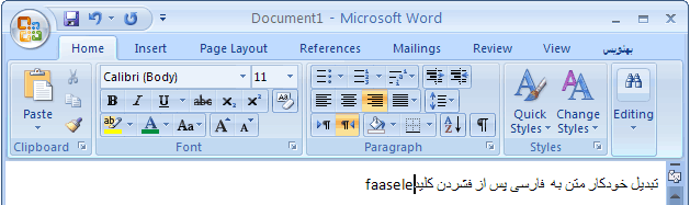 ۲. تبدیل سریع (آنی) پس از نگارش کلمه و فشردن کلید Space